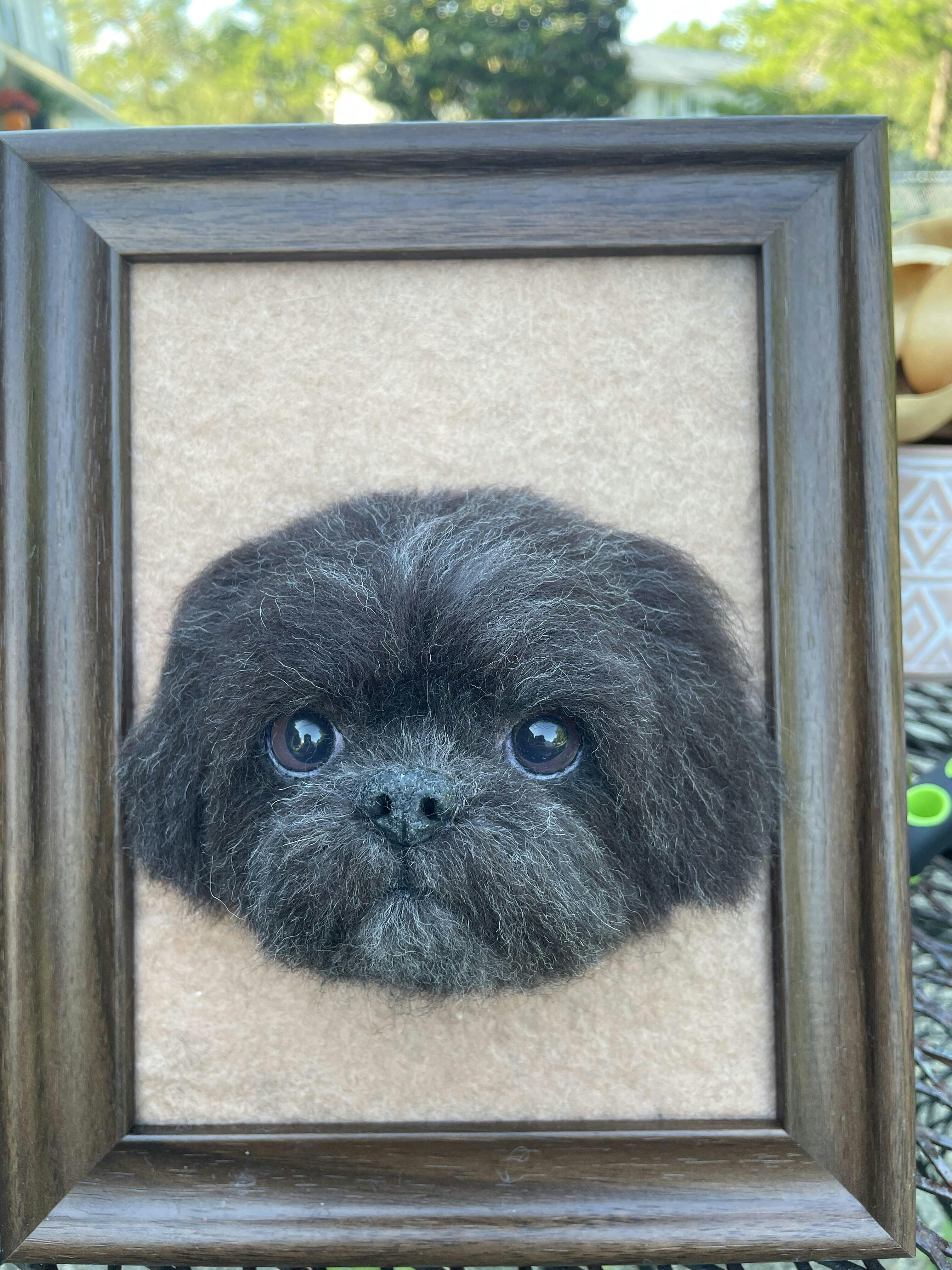 I got a wool felt portrait of my Pomeranian, and Sally nailed every detail—even down to his little teeth. I highly recommend her work; it’s incredible, and she is very talented. I had a tight timeline to receive it in time for my husband’s birthday, and Sally went above and beyond to ensure I got it on time. It made the perfect gift and I couldn’t be happier with the result.