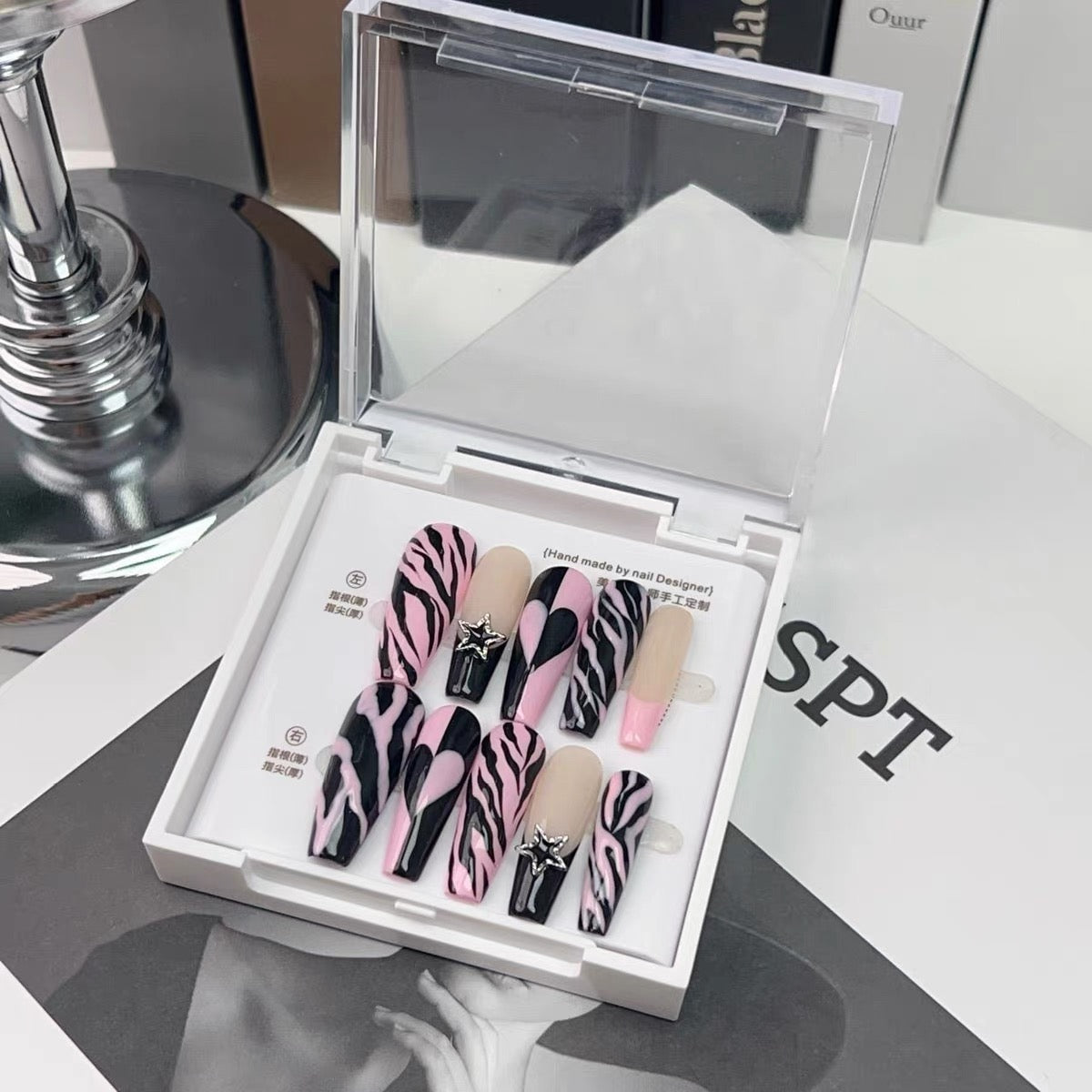 Spicy Girl pink ripple design dress nail